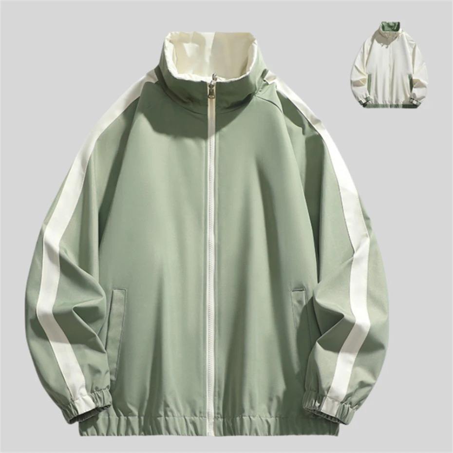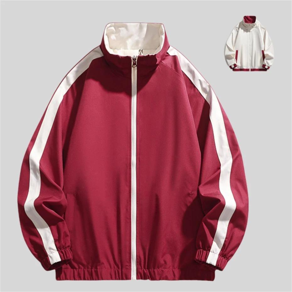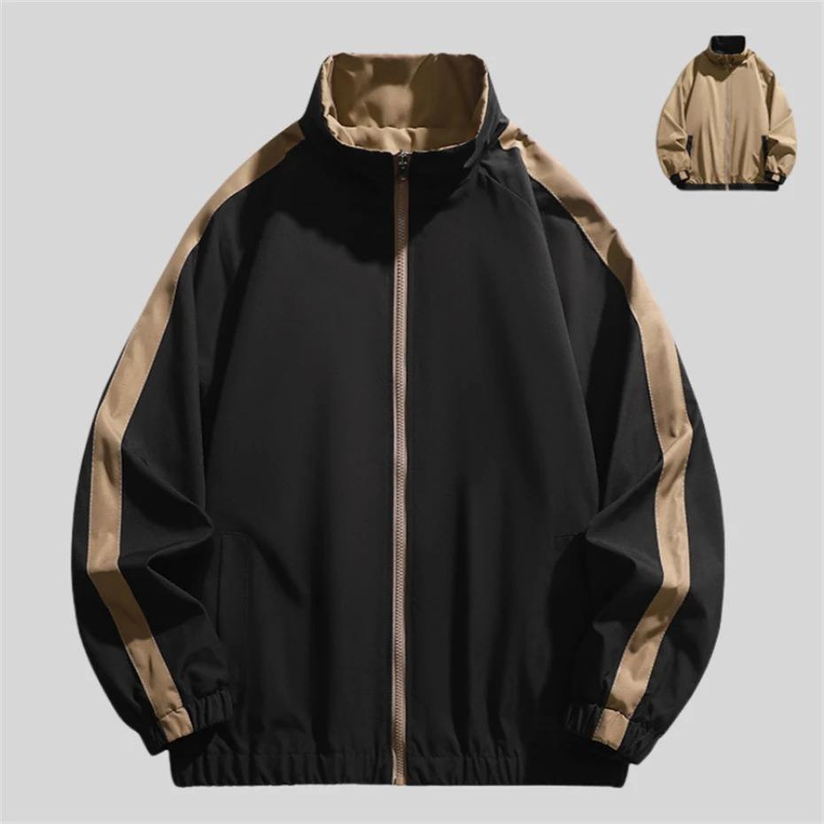 แจ็กเก็ตแฟชั่นแบบใส่กลับด้านได้สำหรับผู้ชายแจ็คเก็ตเบสบอลแบบสตรีทฮาราจูกุเสื้อแจ็คเก็ตเย็บปะโอเวอร์ไซส์มีซิปสีดำ
