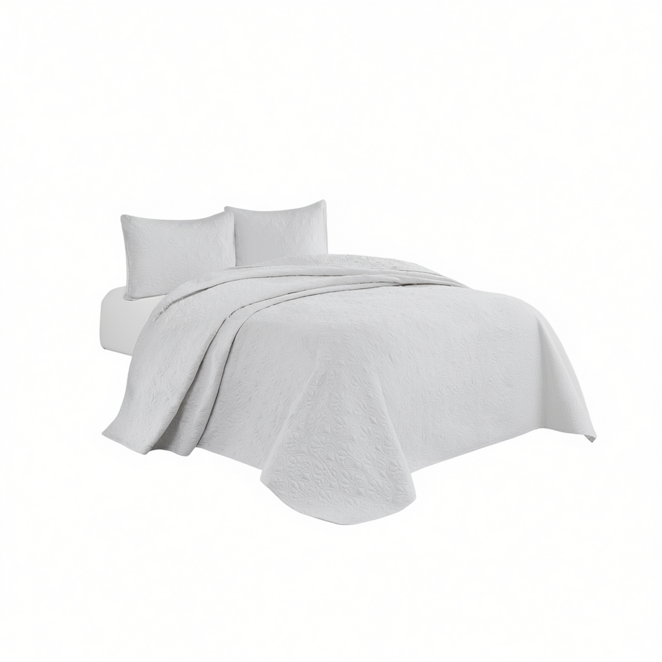 ชุดผ้าคลุมเตียงคู่แบบกลับด้านได้ ดีไซน์หรูหรา สีขาว ผ้าฝ้าย พร้อมผ้าคลุมเตียงแบบเย็บลายเรียบ