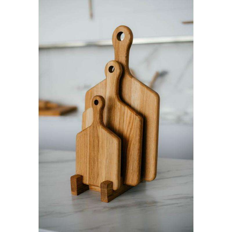 Reversible wooden chopping board with handle ideal for chopping on one side and serving appetizers on the other side