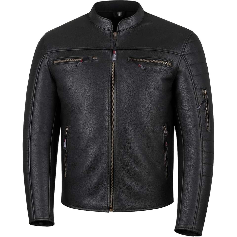 Revolt แจ็กเก็ตมอเตอร์ไซค์สำหรับผู้ชาย, หนังควายธรรมชาติพร้อมเกราะป้องกันลมสำหรับนักขับมอเตอร์ไซค์ท่องเที่ยวสีดำ XL
