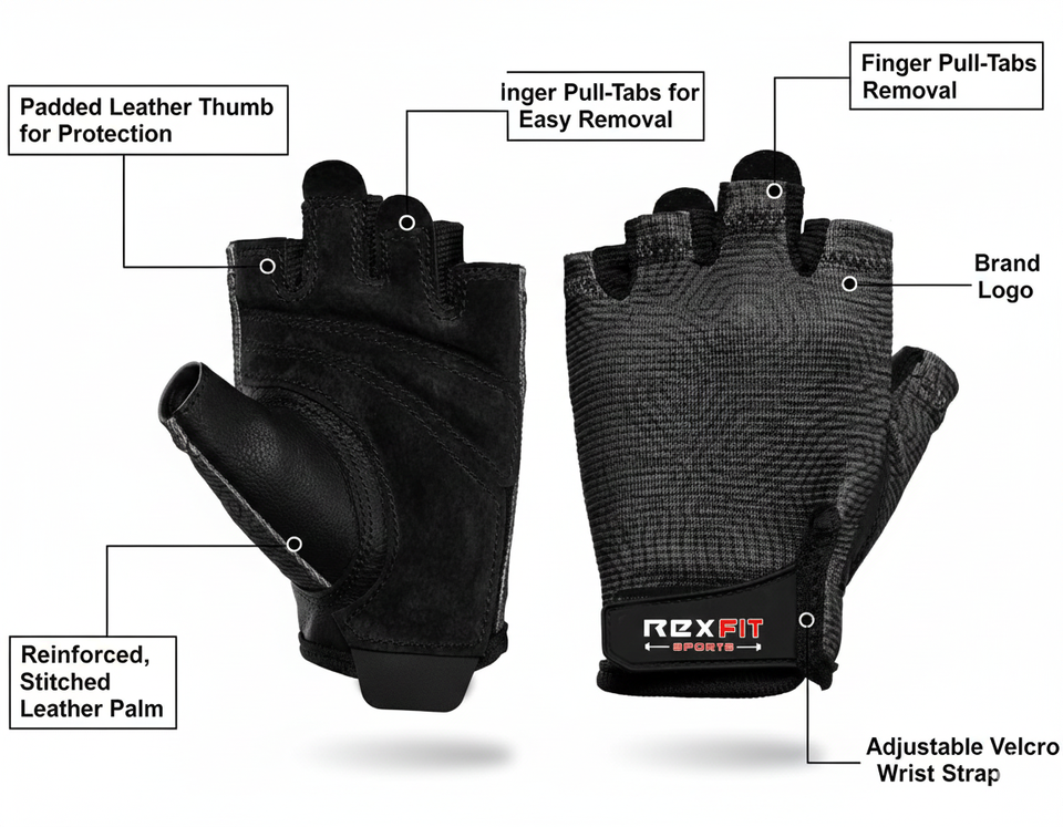 ถุงมือออกกำลังกาย RexFit Sport แบบกำหนดโลโก้เอง สำหรับยิมและฟิตเนส คุณภาพสูง สำหรับทุกเพศ หนังกันลื่น สำหรับยกน้ำหนัก
