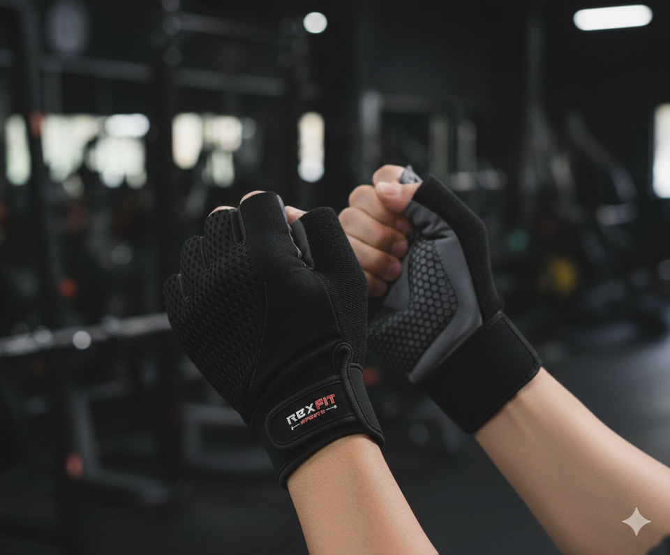 ถุงมือออกกำลังกาย RexFit Sport สำหรับทุกเพศ | ถุงมือยกน้ำหนักหนังคุณภาพสูงกันลื่น