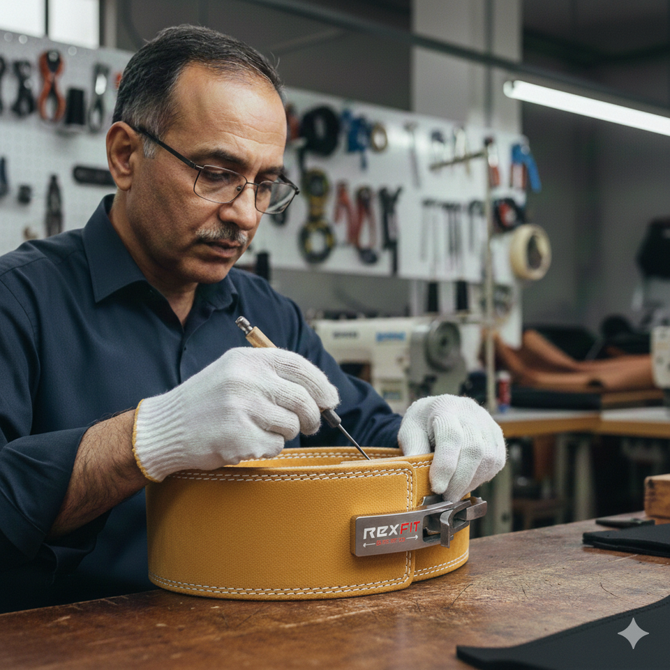เข็มขัดยกน้ำหนักหนังวัว RexFit พร้อมหัวเข็มขัดปรับระดับได้ สำหรับฝึกซ้อมและยกน้ำหนัก