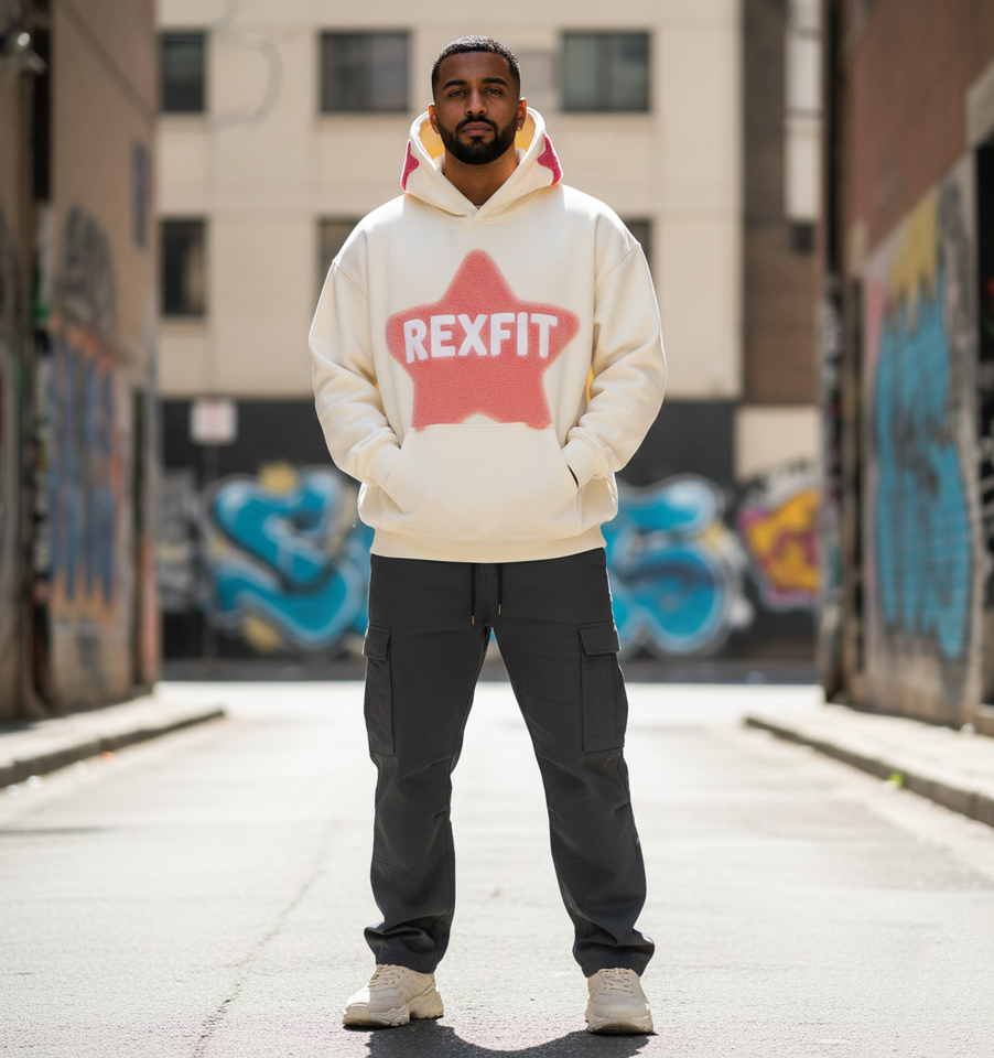 เสื้อฮู้ดซิป Rexfit Sport สำหรับผู้ชาย สกรีนโลโก้ได้ตามต้องการ ทรงหลวมไหล่ตก คุณภาพสูง