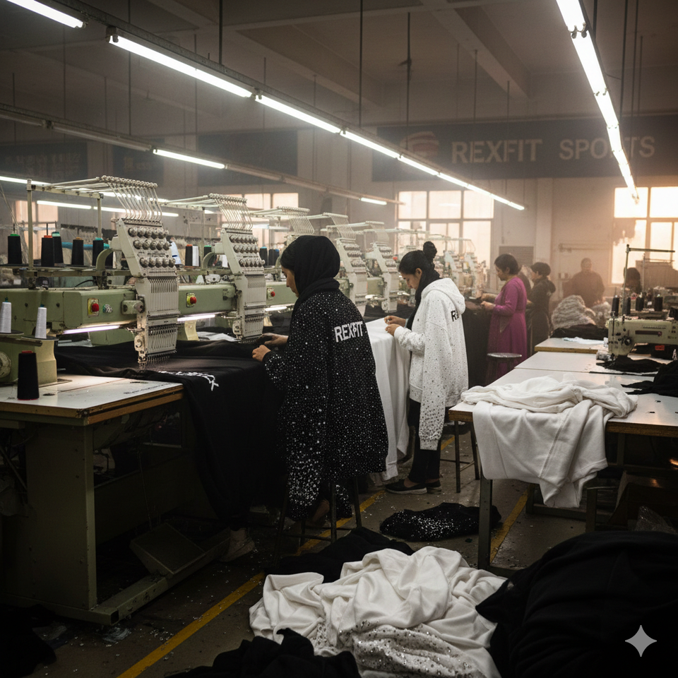 เสื้อฮู้ด Rexfit สีดำขาว แต่งซิป ประดับเพชร ดีไซน์พรีเมียม ผ้าฝ้าย สตรีทแวร์ ยูนิเซ็กซ์ สกรีนโลโก้ได้ แฟชั่นเสื้อฮู้ด