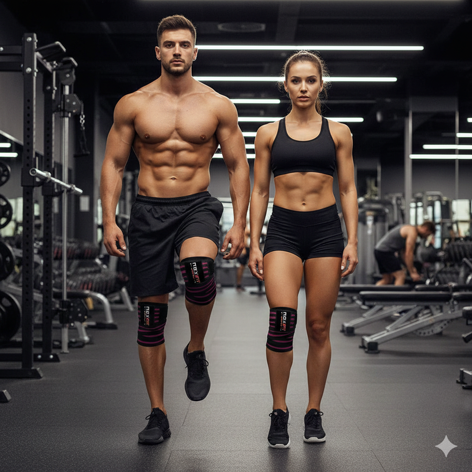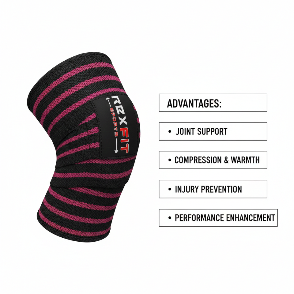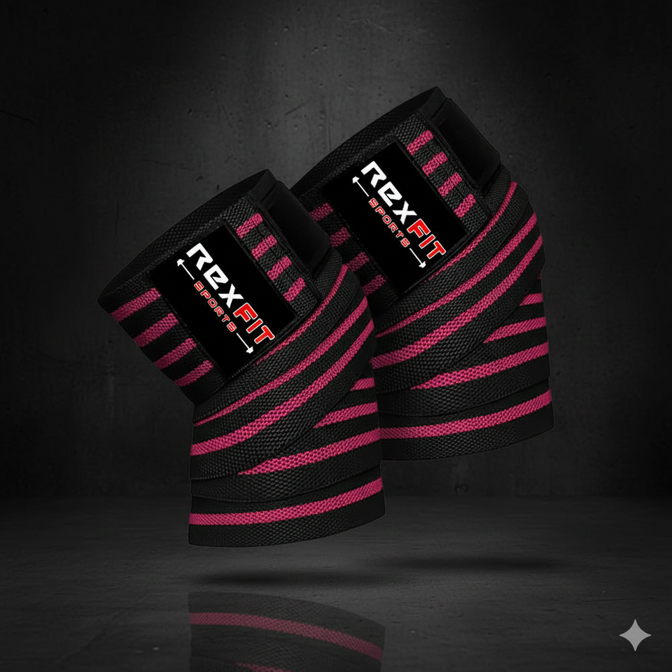 ผ้าพันเข่าแบบยืดหยุ่น Rexfit Sports สำหรับยกน้ำหนัก สายรัดพยุงเข่าแบบรัดกระชับ สำหรับออกกำลังกายและยกน้ำหนัก