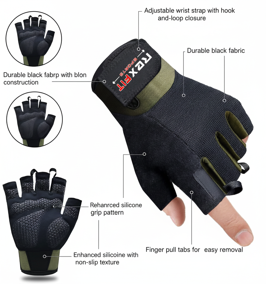 ถุงมือฝึกความแข็งแรง Rexfit Sports | ถุงมือยกของแบบหนาพิเศษ พร้อมการเสริมความแข็งแรงบริเวณข้อมือ สวมใส่สบาย