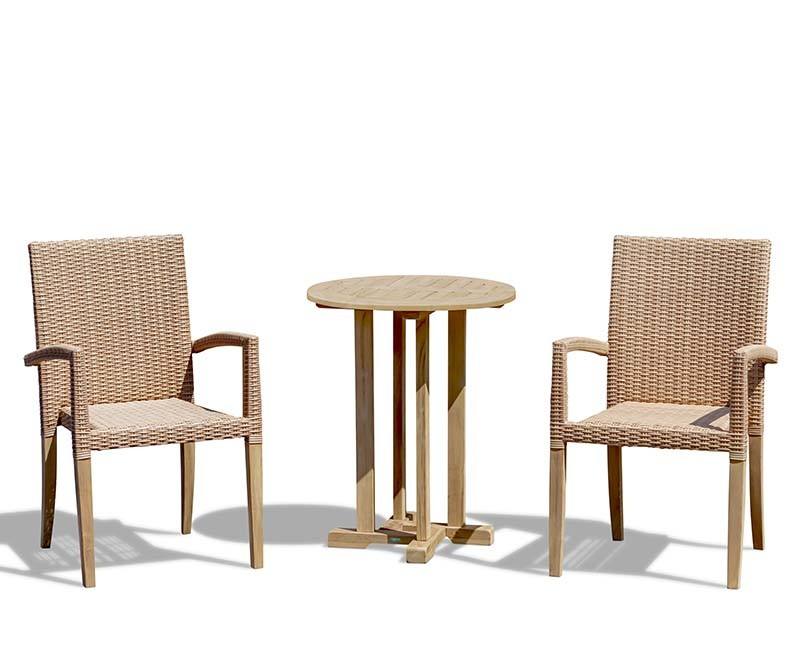 ชุดโต๊ะหวายสำหรับสวนทำจากไม้สักเนื้อแข็งพร้อมเก้าอี้2ตัวพื้นผิวธรรมชาติสำหรับลานบ้านกลางแจ้งใช้ในสไตล์ ST Tropez