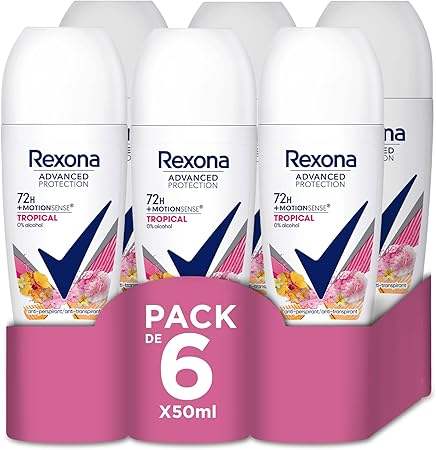 Rexona โรลออนระงับกลิ่นกายสำหรับผู้หญิงกลิ่นเขตร้อน72H 50ml (แพ็ค6)