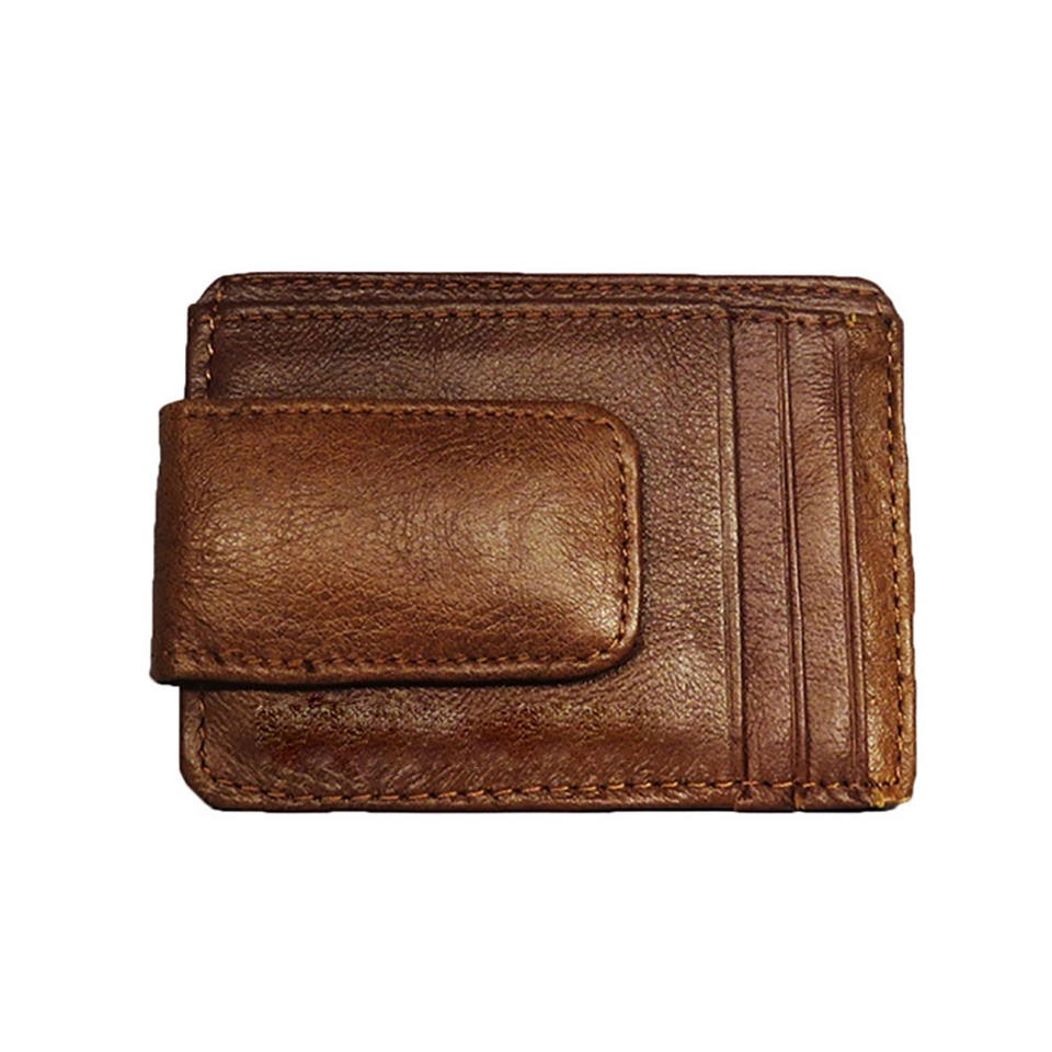 กระเป๋าสตางค์หนัง PU RFID แบบพับสองด้านสำหรับผู้ชายมีกระเป๋าด้านหน้าและคลิปหนีบเงินที่ใส่บัตรมีซิปปิดแบบพกพา