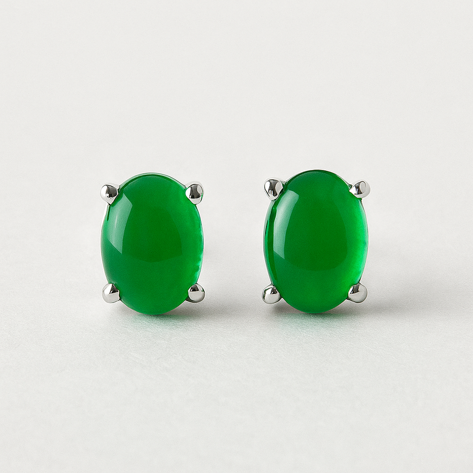 เครื่องประดับรายาต่างหูรูปไข่สีเขียวออนิกซ์สำหรับผู้หญิง โรแมนติก คลาสสิก ชุบโรเดียม เงินสเตอร์ลิง ของขวัญหมั้น งานแต่งงาน