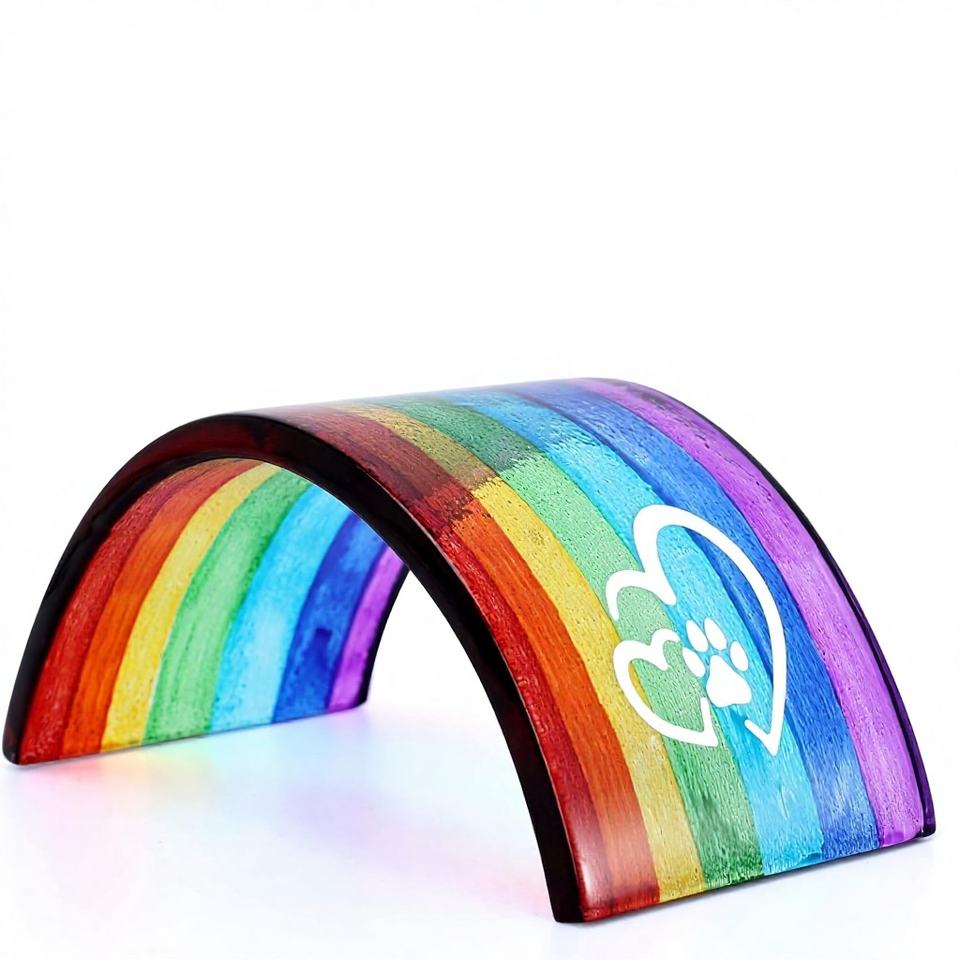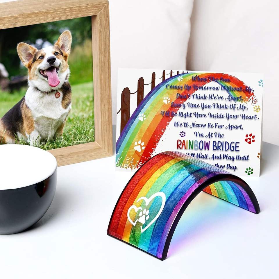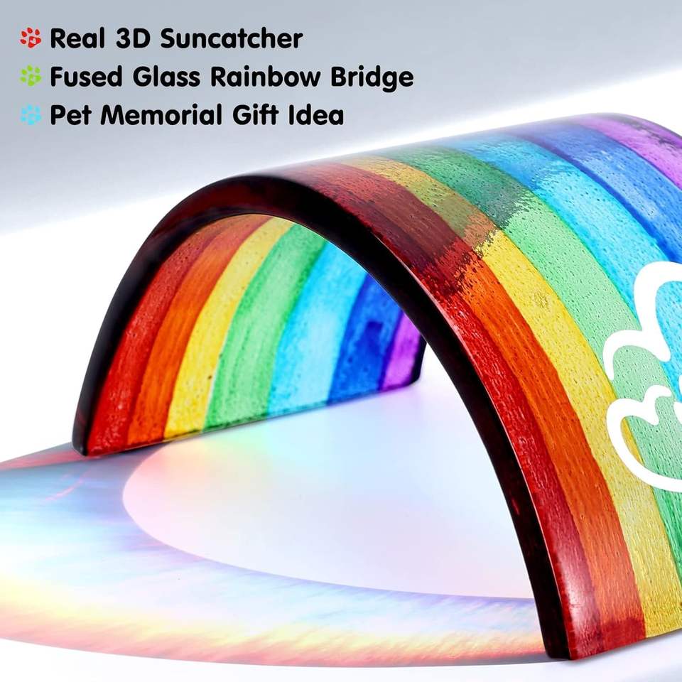 การ์ดแสดงความเสียใจรูปสะพานสายรุ้ง 3 มิติ ทำจากแก้วหลอม รุ่น Rhdekoein Dog Memorial ของขวัญที่ระลึกสำหรับสัตว์เลี้ยง (สุนัข/แมว/หนูตะเภา)