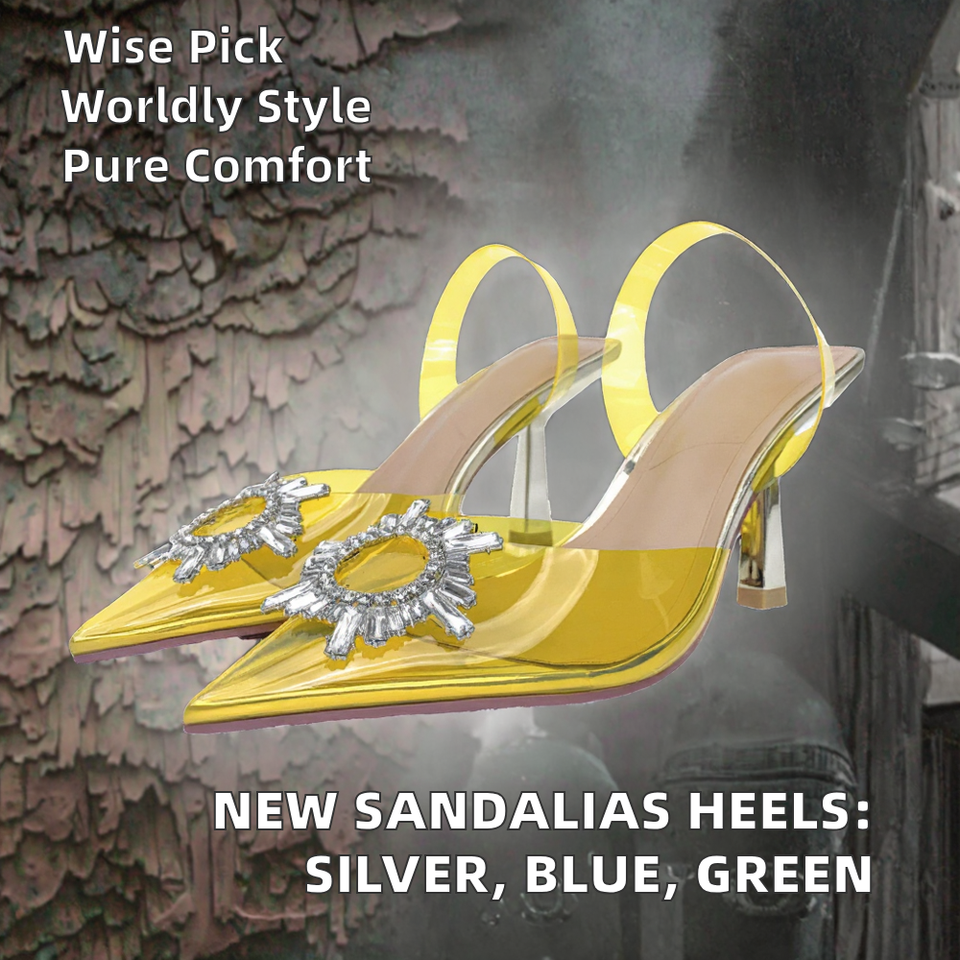 รองเท้าส้นสูงประดับเพชรพลอยสีฟ้าเขียว ฤดูใบไม้ผลิ ฤดูร้อน ฤดูใบไม้ร่วง ฤดูหนาว ระบายอากาศได้ดี กันลื่น รองเท้าข้อเท้าสีเงิน ผู้หญิง PVC สินค้ามาใหม่