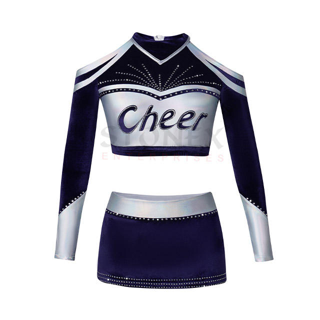 ชุดเชียร์ลีดเดอร์ประดับเพชรเทียม คุณภาพดีที่สุด ขายดี ชุดซ้อมเชียร์ลีดเดอร์ เสื้อและกระโปรง