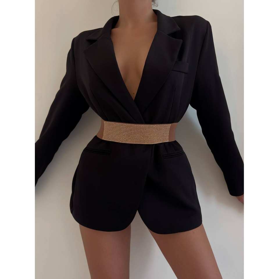 เข็มขัดผ้าอีลาสติกประดับด้วยไรน์สโตน
