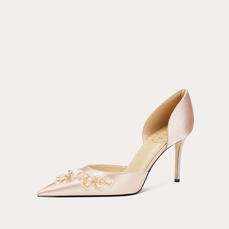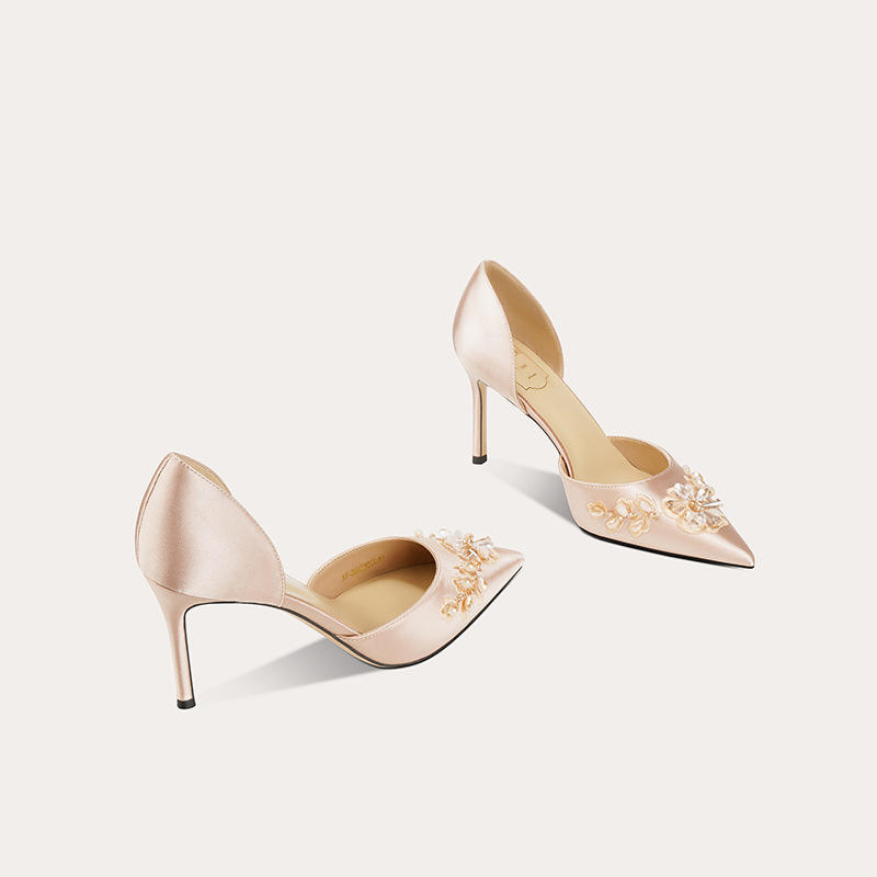 รองเท้าส้นสูงประดับดอกไม้คริสตัลสีแดงแบบเซ็กซี่ ปลายแหลม ส้นเตี้ย สำหรับผู้หญิง ส้นสูง 6 ซม./8 ซม. เหมาะสำหรับงานแต่งงาน งานปาร์ตี้ และงานเลี้ยง