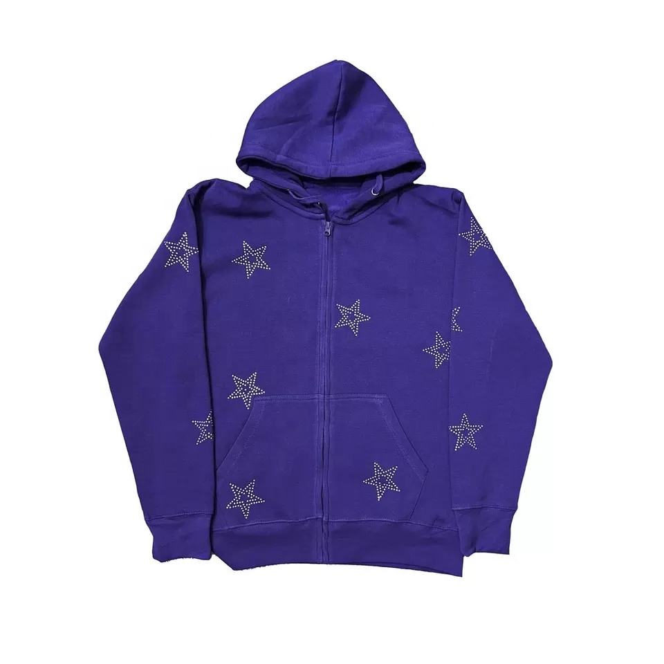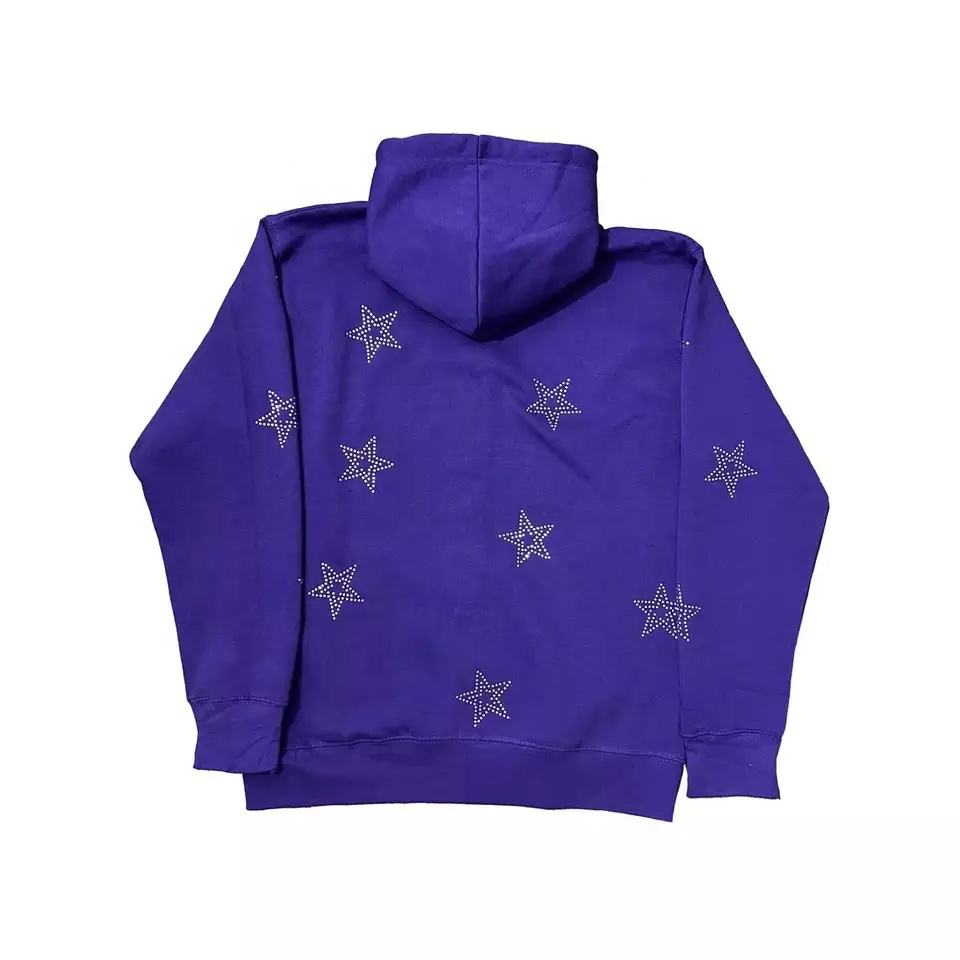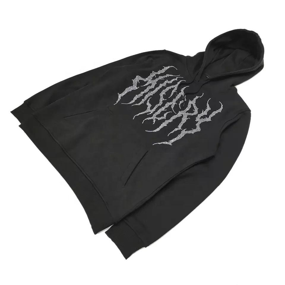 เสื้อฮู้ดแบบสวมศีรษะสำหรับผู้ชาย,เสื้อฮู้ดสตรีทแฟชั่นพลอยเทียมตัวอักษรโลโก้กีฬาแบบกำหนดเอง