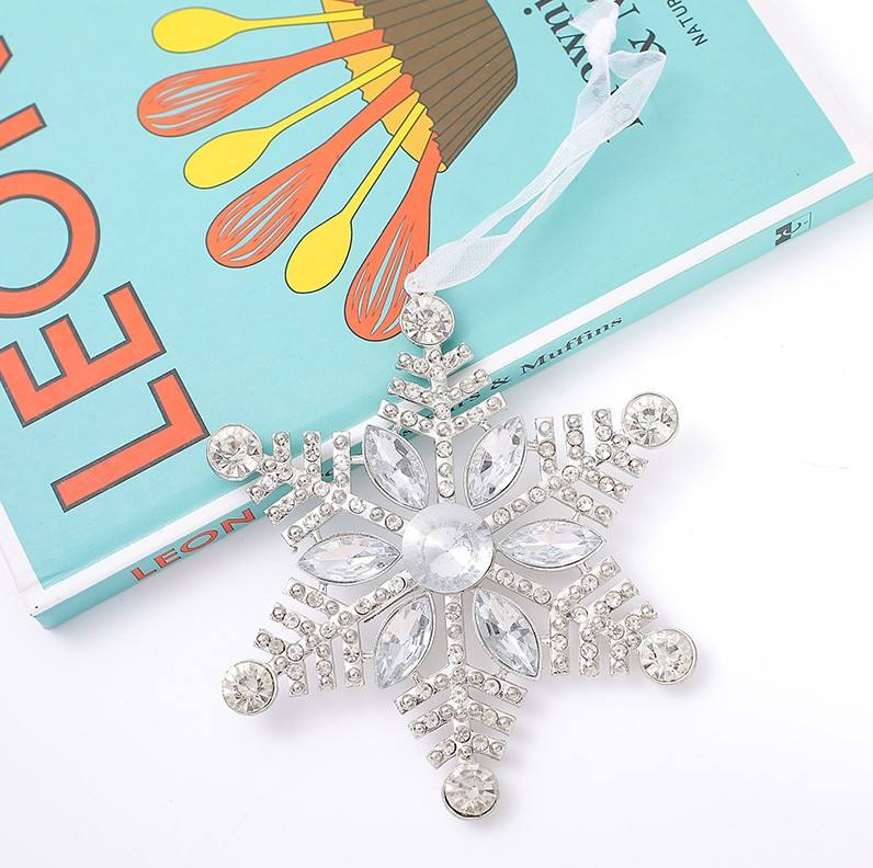 Rhinestone Snowflake Christmas Hanging Pendant Decor Custom Metal Christmas Tree Ornament Decoration