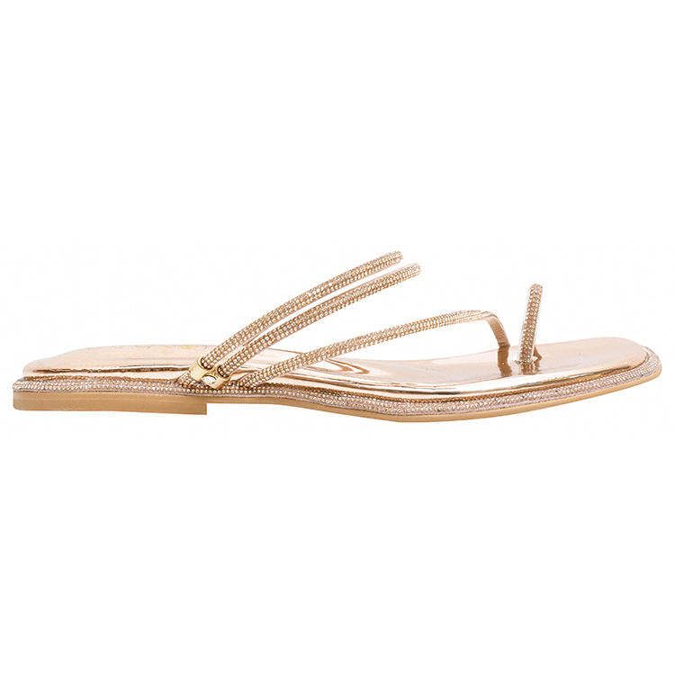 รองเท้าแตะส้นแบนสวมใส่คู่กับเปิดนิ้วเท้าและประดับพลอยเทียม