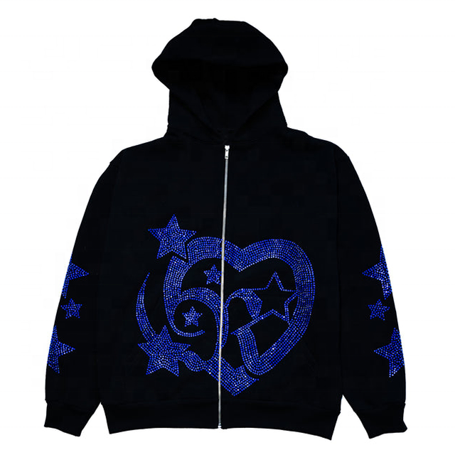 เสื้อฮู้ดผู้ชายแบบมีฮู้ด แต่งคริสตัล ป้องกันน้ำ ทรงโอเวอร์ไซส์ สไตล์ลำลอง สำหรับฤดูใบไม้ร่วง