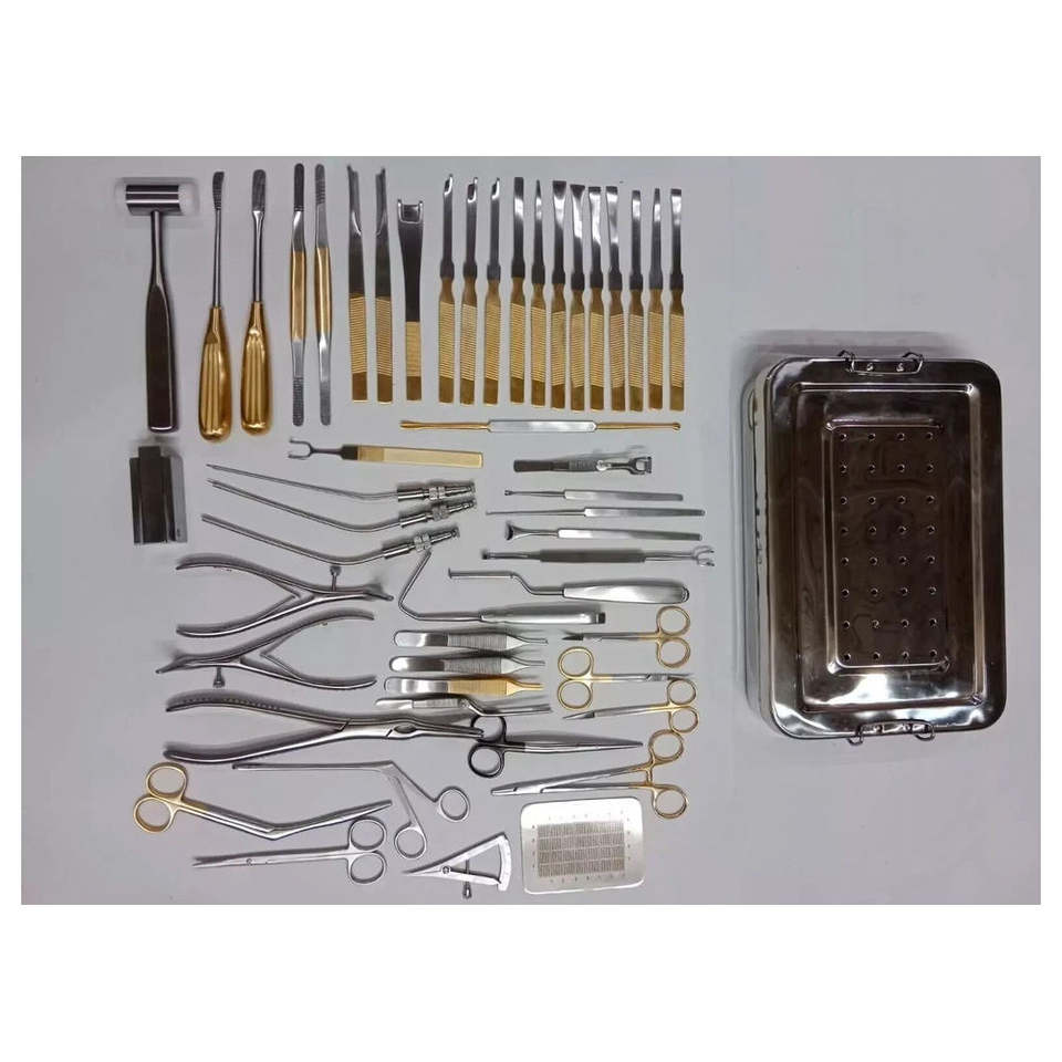 ชุดเครื่องมือผ่าตัดเสริมจมูก 50 ชิ้น ผลิตจากสแตนเลสเกรดพรีเมียมของเยอรมัน ใช้สำหรับการสร้างจมูกใหม่ ได้รับการรับรองมาตรฐาน CE