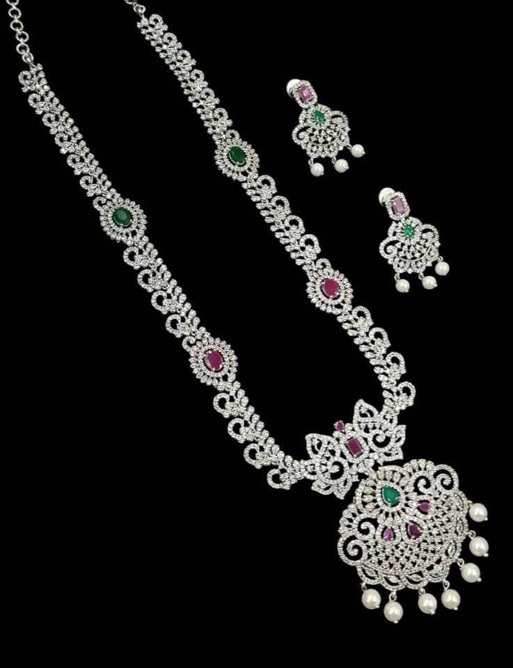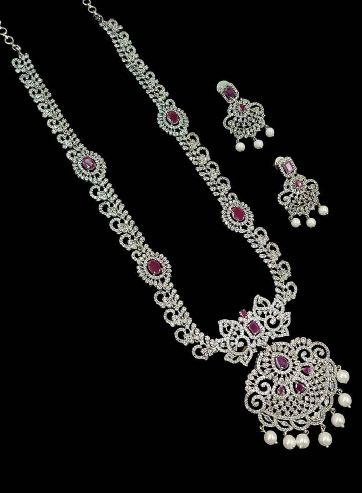 ชุดสร้อยคอเจ้าสาวประดับเพชรคิวบิกเซอร์โคเนียหรูหราสไตล์อเมริกันเคลือบโรเดียม คุณภาพสูง เครื่องประดับงานแต่งงาน ปี 2026 กำลังเป็นที่นิยม