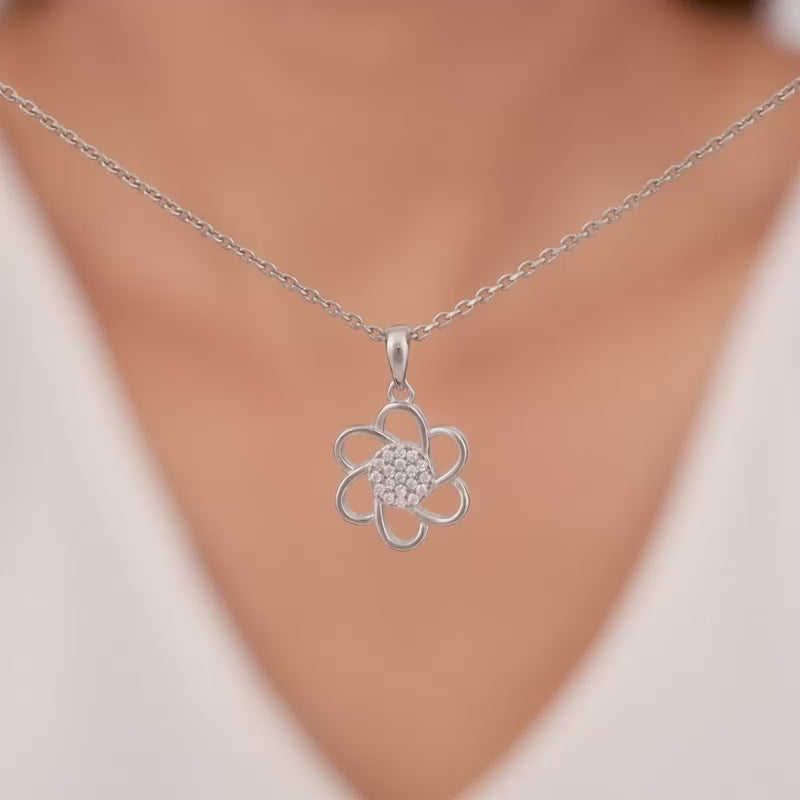 โรเดียมชุบทองจี้ดอกไม้ทันสมัยพร้อมสายโซ่ที่ทำจากเพทายไข่มุกเพชรทำจากสแตนเลสสตีล