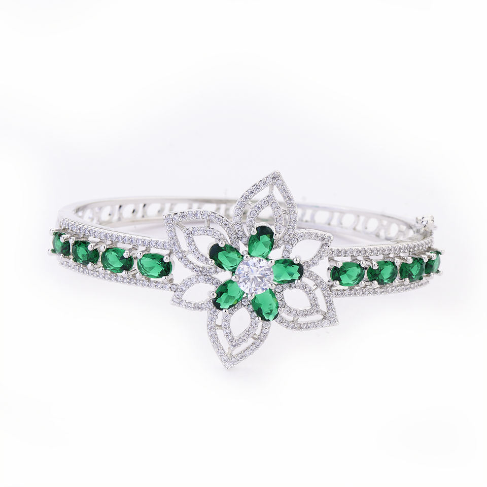 เพชรอเมริกันคลาสสิกชุบโรเดียม Kada พร้อมหินสีเขียวมีจําหน่ายในราคาสมเหตุสมผลสําหรับสุภาพสตรี