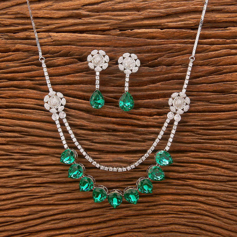 ชุดสร้อยคอคิวบิกเซอร์โคเนียชุบโรเดียมชุบโรเดียมผู้ค้าส่งเครื่องประดับเทียมในมุมไบ