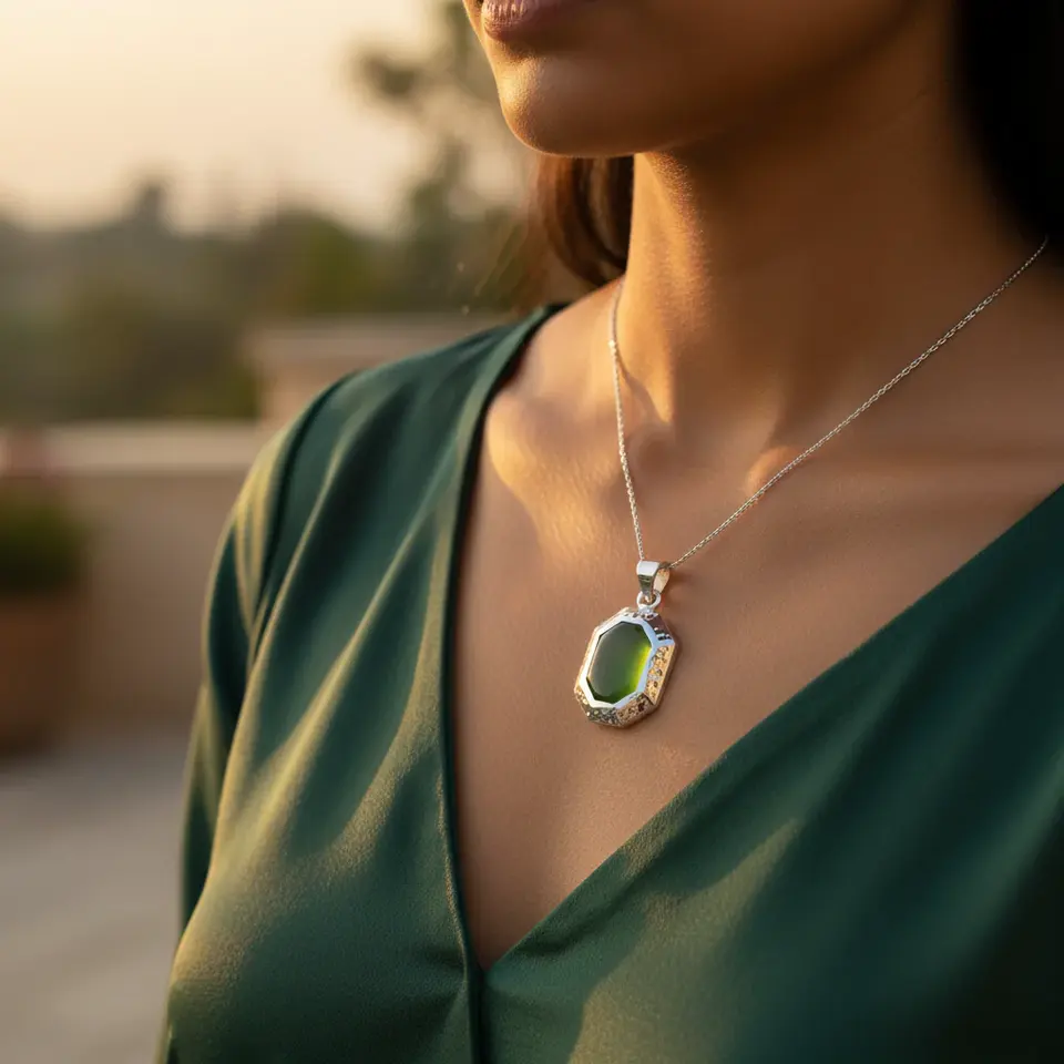 จี้ห้อยคอประดับเพชรเคลือบโรเดียม ประดับพลอยสีเขียว สำหรับผู้หญิง สวมใส่ได้ทุกวัน เหมาะเป็นของขวัญ
