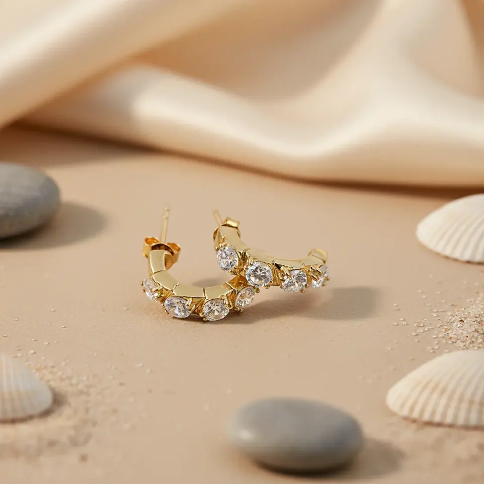 ต่างหูแบบห่วงชุบโรเดียมประดับเพชรคิวบิกเซอร์โคเนียสำหรับผู้หญิง สไตล์ศาสนาและทันสมัย