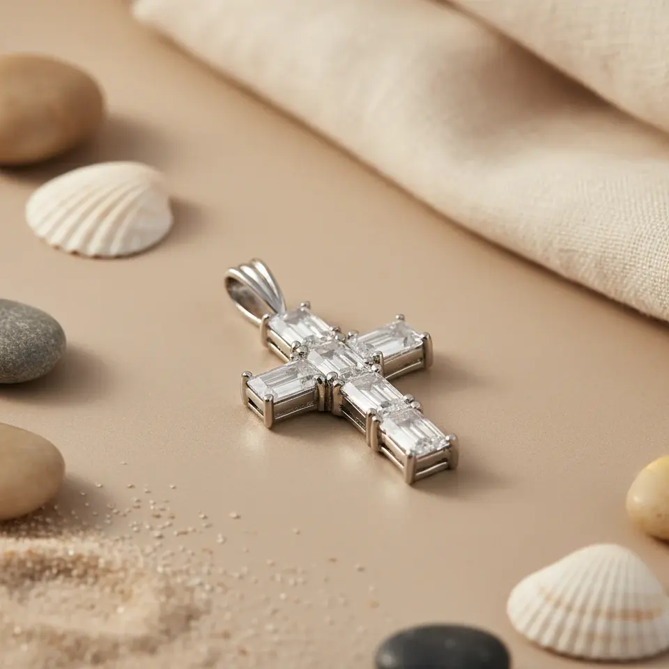 จี้รูปไม้กางเขนชุบโรเดียม ทองคำขาว และทองคำชมพู ประดับเพชรและเพทาย สำหรับผู้หญิง สไตล์ทันสมัยและวินเทจ เหมาะสำหรับสวมใส่ในชีวิตประจำวัน