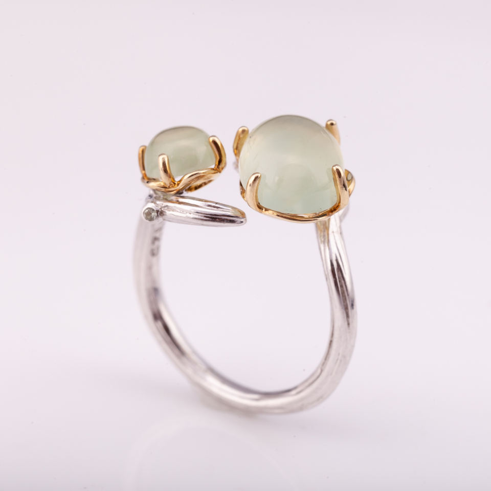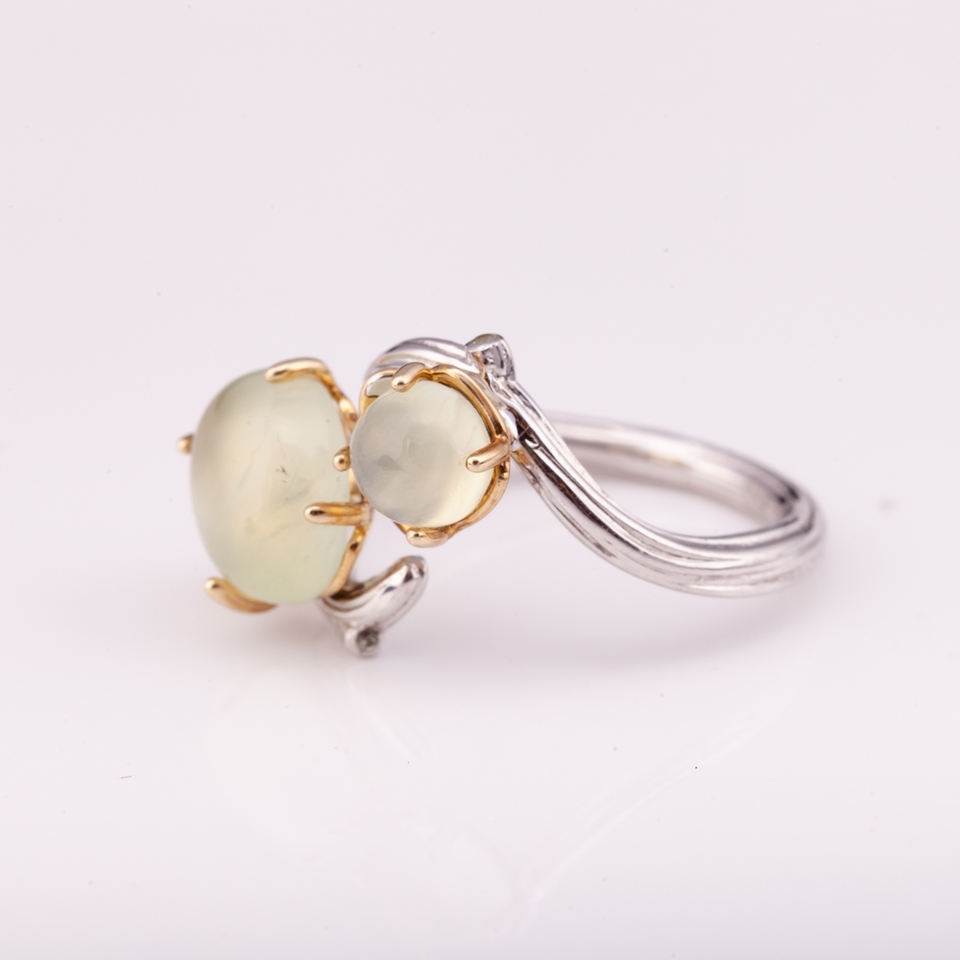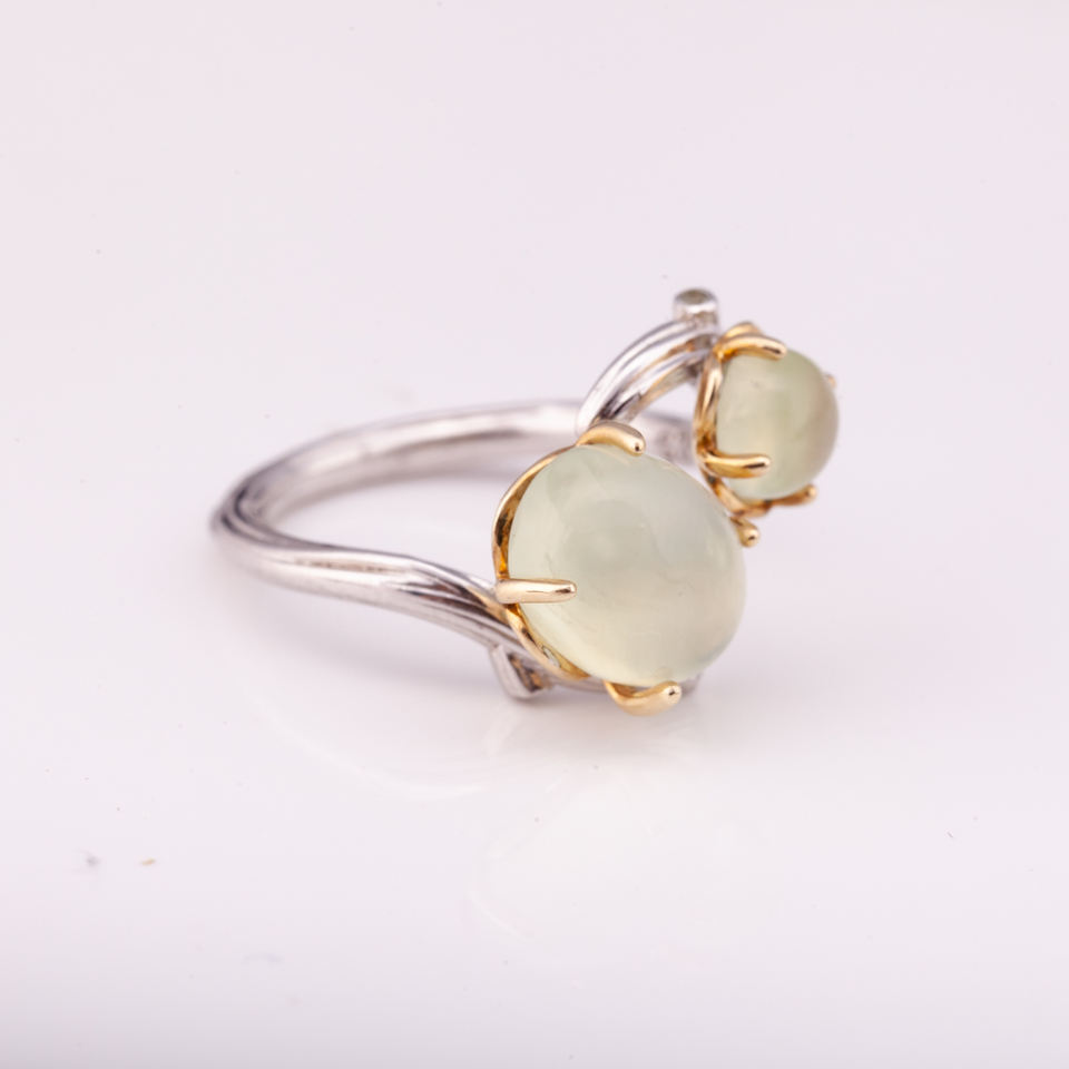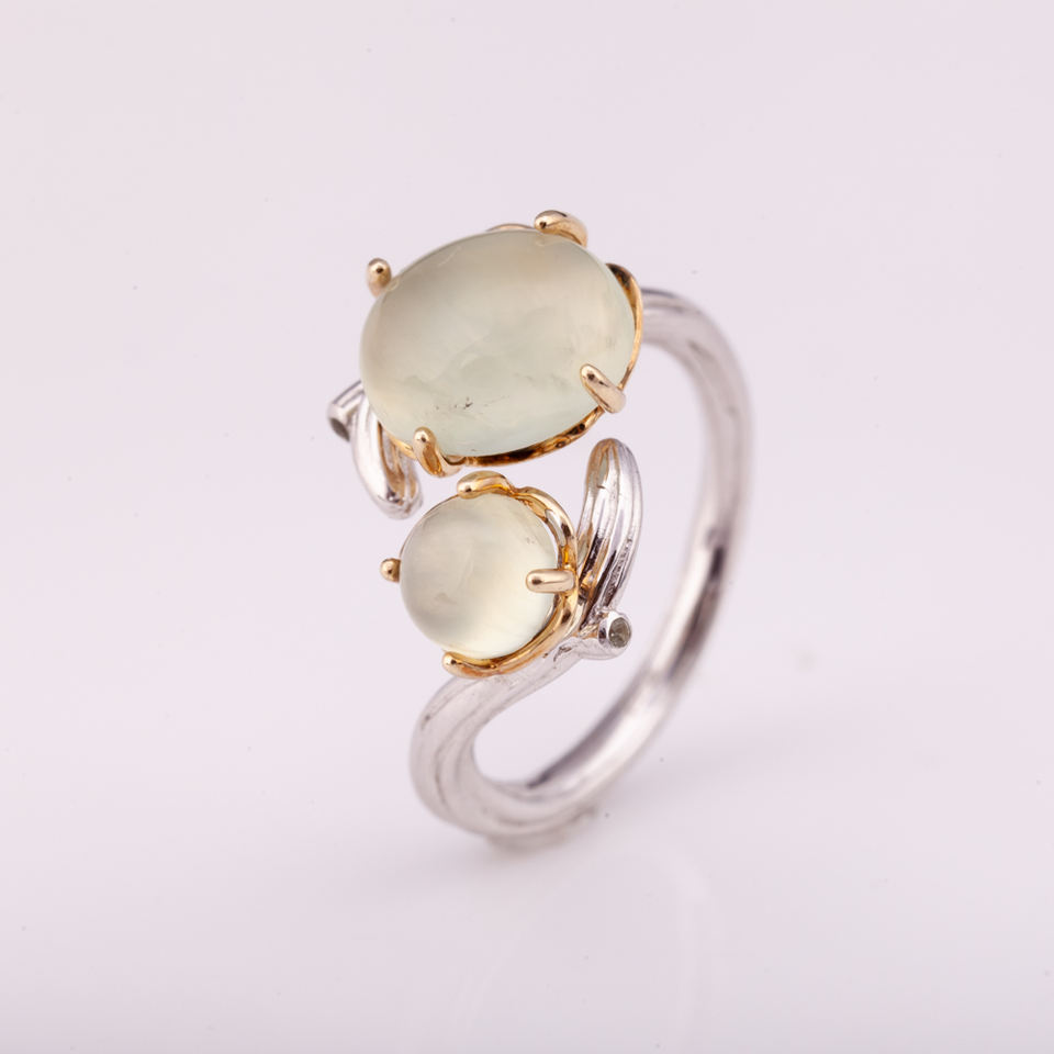 โรเดียมชุบเงิน925ปรับแหวนด้วยธรรมชาติ Prehnite พลอยราคาโรงงานจากประเทศไทย