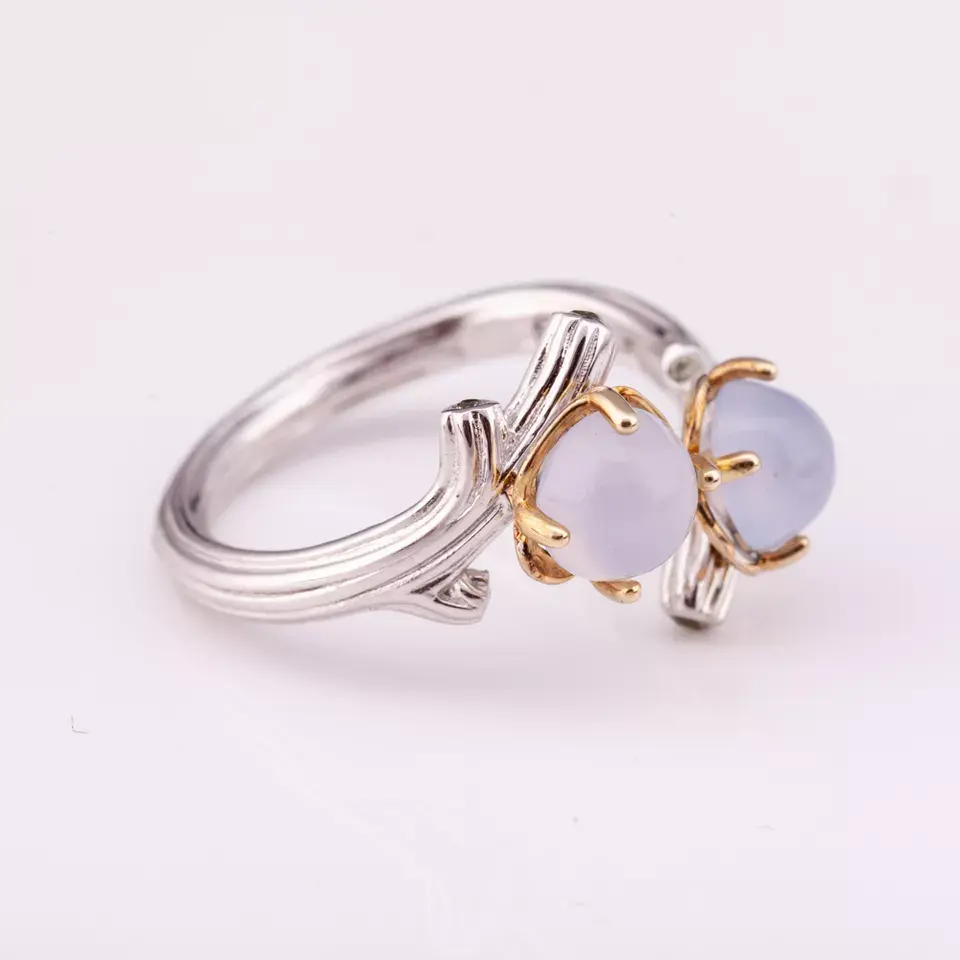 โรเดียมชุบเงิน925แหวนปรับธรรมชาติ Chalcedony คุณภาพสูงจากประเทศไทยผู้ผลิต