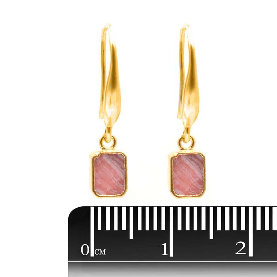 Rhodochrosite Ear Wire Rectangle Shape Gold Electroplated Earring