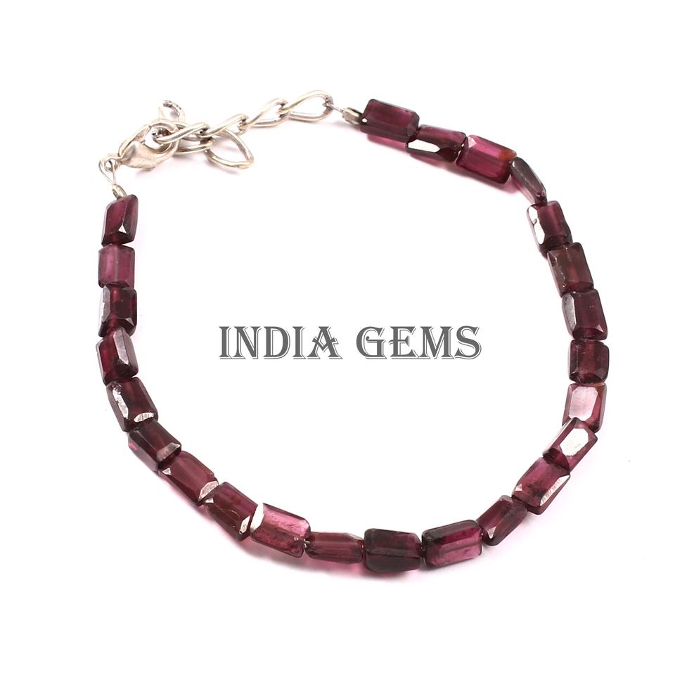 ลูกปัดเงิน925ปรับได้สำหรับสร้อยข้อมือลูกปัดพลอยโกเมน Rhodolite รูปทรงสี่เหลี่ยมผืนผ้าเหลี่ยมเพชรพลอยของขวัญสไตล์คลาสสิกที่สมบูรณ์แบบ