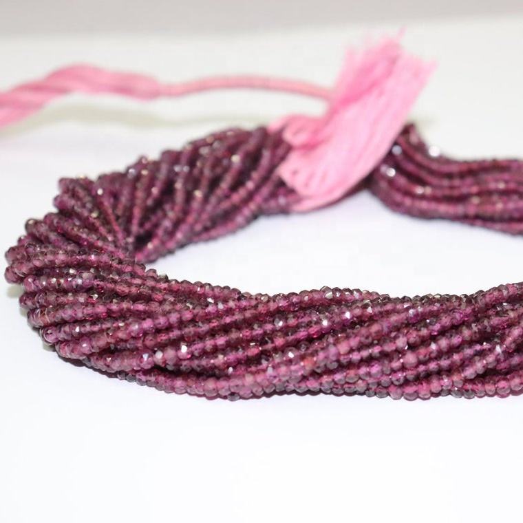 ลูกปัดโรโดไลต์การ์เน็ตทรงรอนเดลแบบเจียระไน