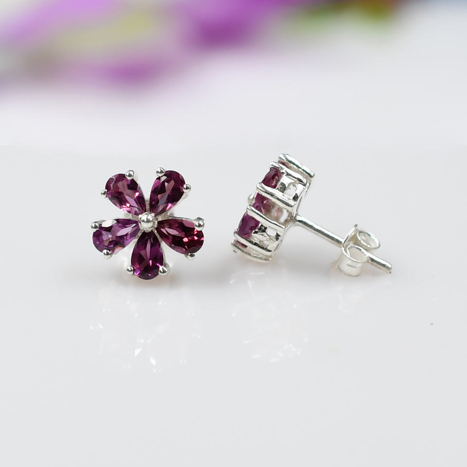 ต่างหูรูปดอกไม้โรโดไลต์การ์เนต เงินแท้ 925 เครื่องประดับเงินแท้ ปรับแต่งได้สำหรับผู้หญิง อัญมณีธรรมชาติ