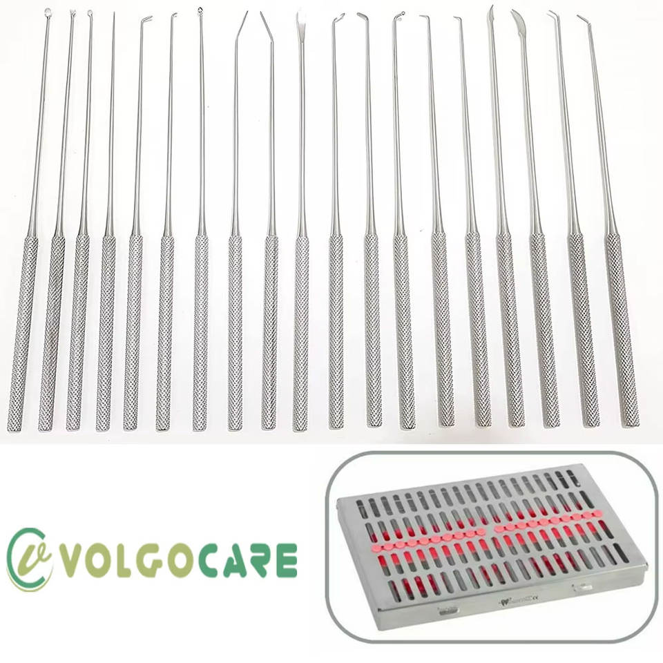 Rhoton ชุดไมโครดิสเซกเตอร์20ชิ้นสแตนเลสคู่มือเครื่องมือผ่าตัดระบบประสาทได้รับการรับรอง CE ดูแล Volgo INTL