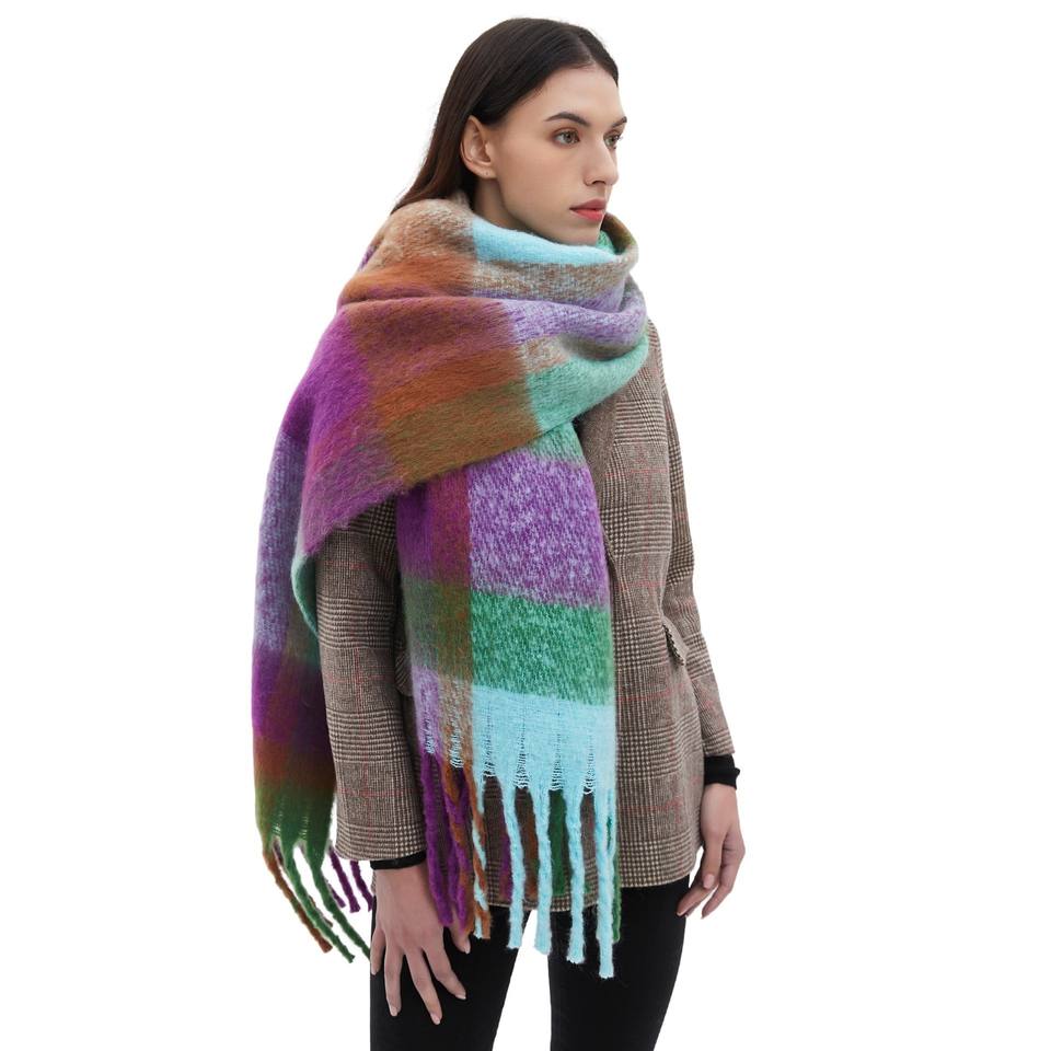 Rhyme ใหม่จุดโรงงานต่างประเทศยุโรปอเมริกาใหม่ฤดูใบไม้ร่วงฤดูหนาวเส้นด้ายหนาลายสก๊อตขนาดใหญ่โพลีเอสเตอร์ระบายอากาศ
