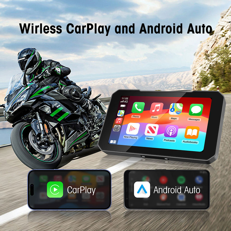 รถยนต์เพลย์รถจักรยานยนต์ไร้สายจังหวะ5นิ้วระบบแอนดรอยด์หน้าจออัตโนมัติ IP67กันน้ำระบบนำทาง GPS อุปกรณ์ TPMS