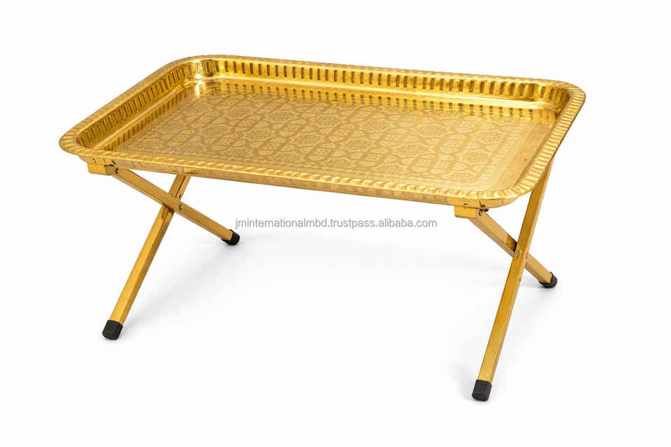 ถาดชาแบบอาหรับโบราณหรูหรา รุ่นเรียด พร้อมโต๊ะกาแฟพับได้ โครงเหล็กสแตนเลส สำหรับห้องนั่งเล่น