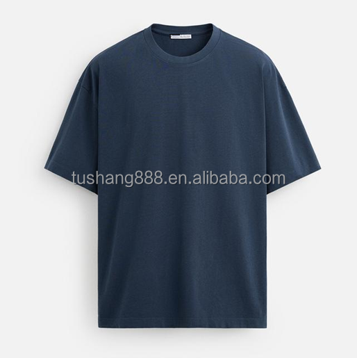 Rib Round Nevh Crew Necks Mens Tee Basic Heavy Weight Navy Cotton Custom Blue Plain Tshirts