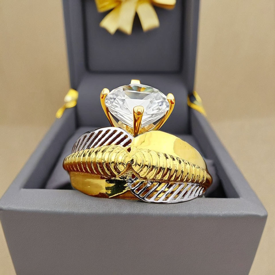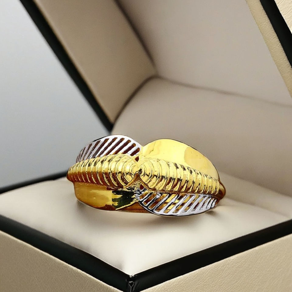 แหวนทองหุ้มลายริบบิ้นสองสี | ดีไซน์เนื้อสัมผัสพิเศษ 2.770 กรัม สำหรับผู้หญิง | เครื่องประดับทองคำเหลืองแฟชั่นสมัยใหม่