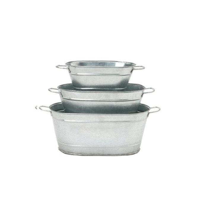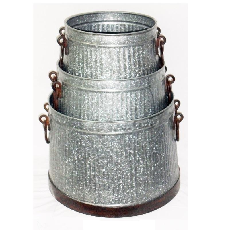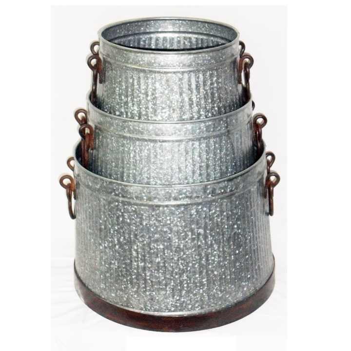 กระถางปลูกต้นไม้เหล็กชุบสังกะสีคุณภาพสูง ดีไซน์หรูหราทันสมัย ชุด 3 ใบ ตกแต่งสวน ใช้ในบ้าน