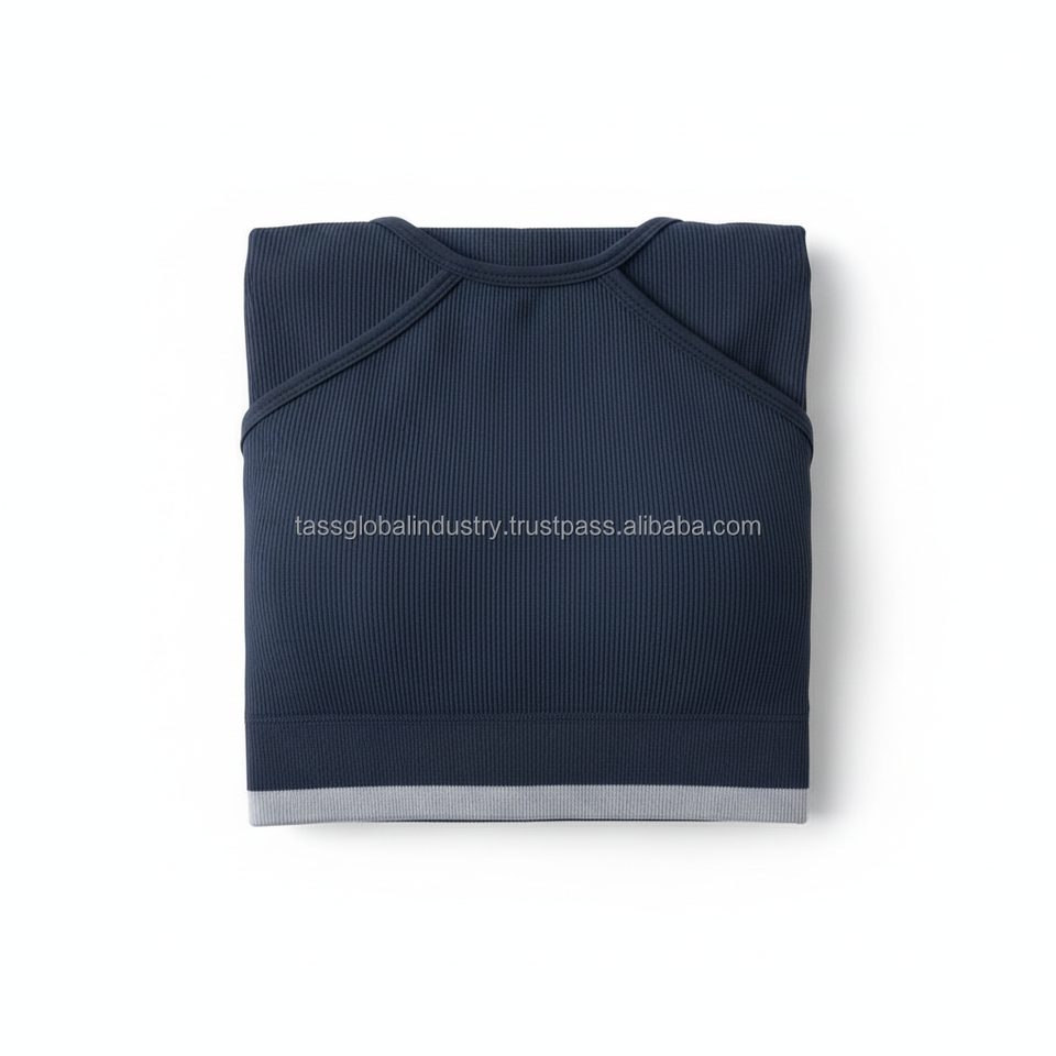 เสื้อครอปออกกำลังกายผู้หญิงแบบถักริบบ์ ดีไซน์ไขว้ด้านหน้า ระบายอากาศได้ดี พร้อมฟองน้ำเสริมทรง