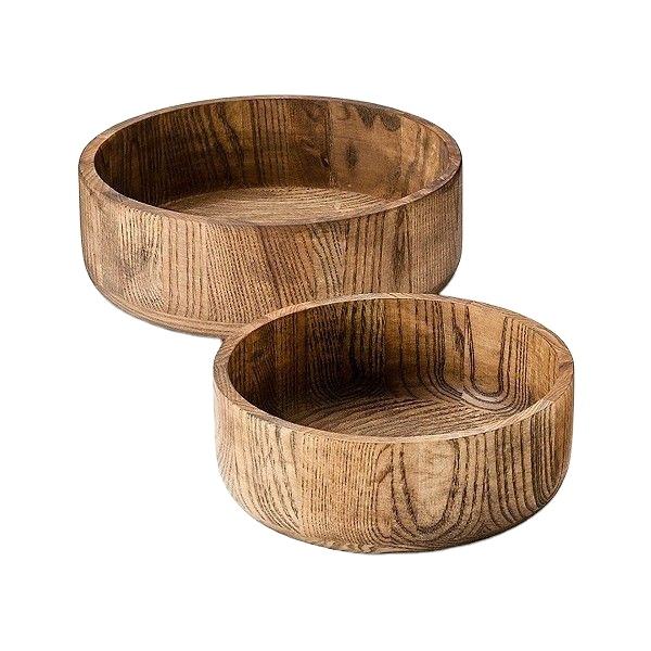 Ribbed Rim Wooden Serving Bowl Decorative Acacia Wood Elegant Round Design Perfect for Fruit Salad Kitchen & Home Decor