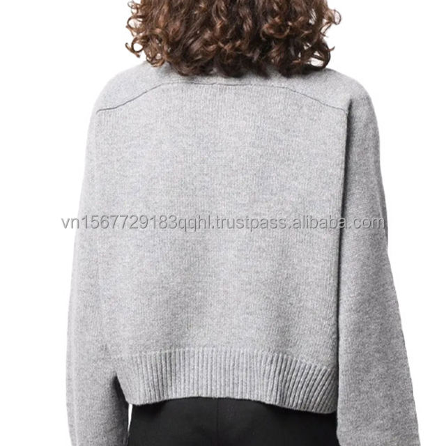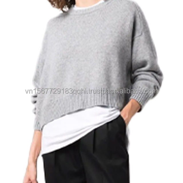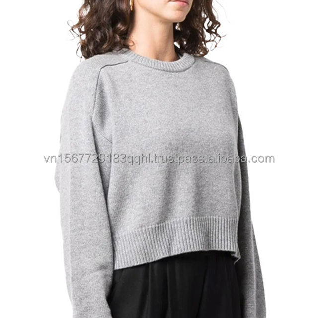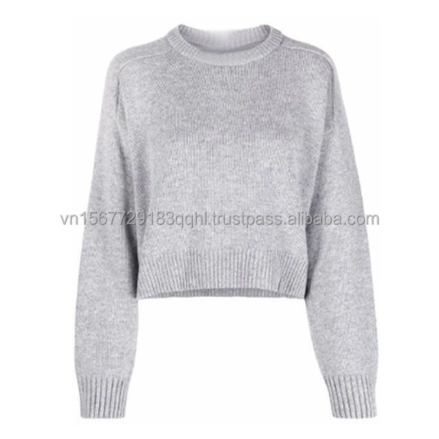 เสื้อสเวตเตอร์ครอป แต่งขอบยางยืด ดีไซน์ถักนิตติ้ง แขนยาว คอกลม เสื้อไหมพรมครอป ปรับแต่งได้ เสื้อผู้หญิงอุ่นๆ