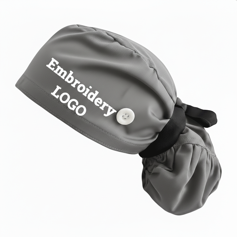 หมวกผ่าตัดแบบผูกโบว์ ผ้าซาตินบุซับใน สีพื้น พร้อมโลโก้