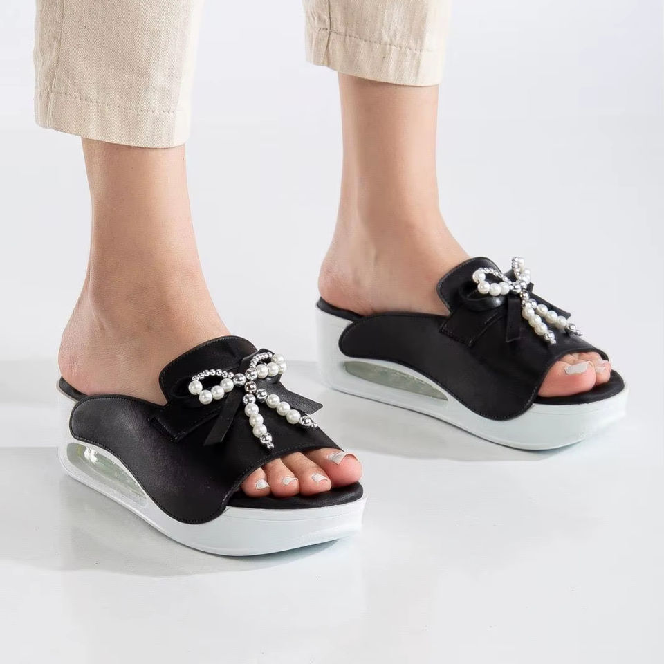 รองเท้าแตะผู้หญิงริบบิ้นและหัวเข็มขัดมีรายละเอียดเกี่ยวกับศัลยกรรมกระดูกรุ่นเดียว